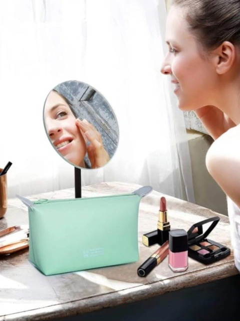 This vanity pouch is super handy for the price! It fits a lot, is waterproof, and works perfectly for cosmetics, travel, or even storing medicines. Very happy with my purchase!”