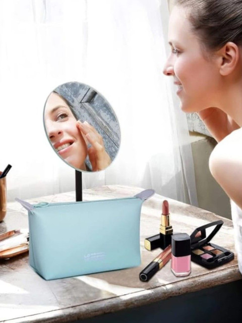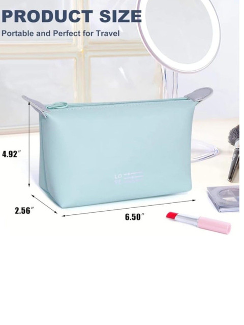 This vanity pouch is super handy for the price! It fits a lot, is waterproof, and works perfectly for cosmetics, travel, or even storing medicines. Very happy with my purchase!”