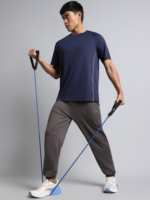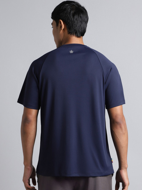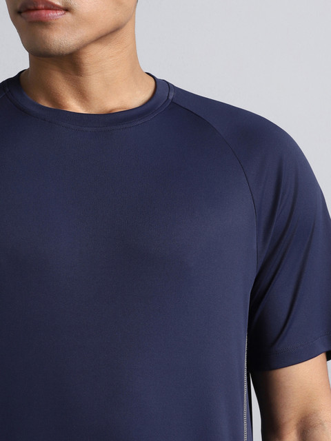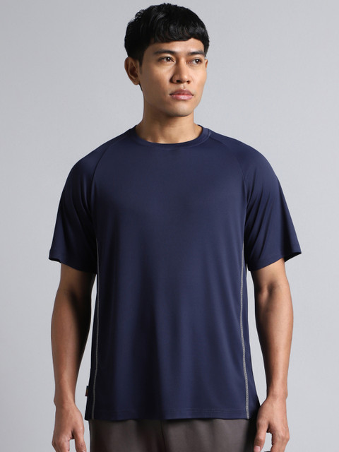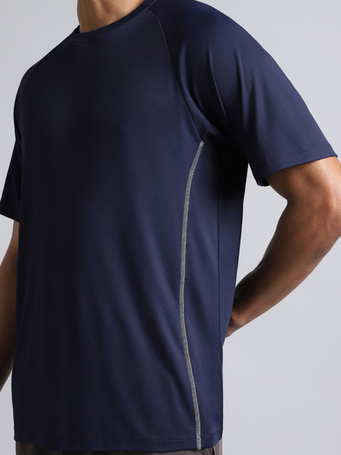 - Navy blue solid regular fit T-shirt for men