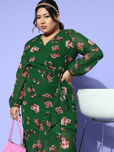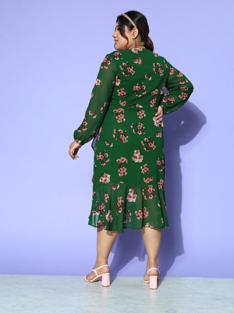 CURVE BY KASSUALLY Plus Size Floral Georgette Midi Dress