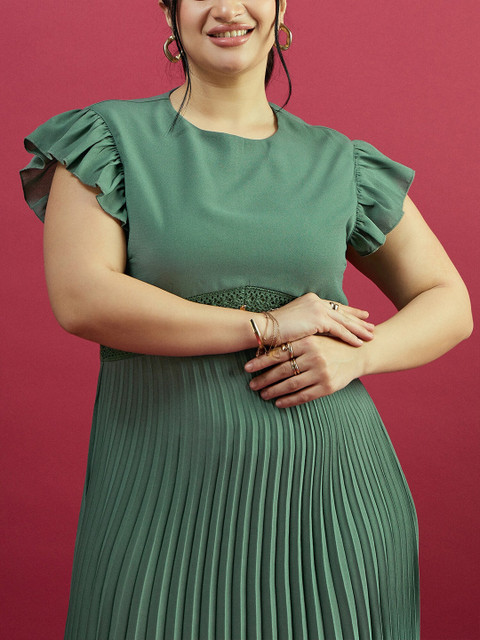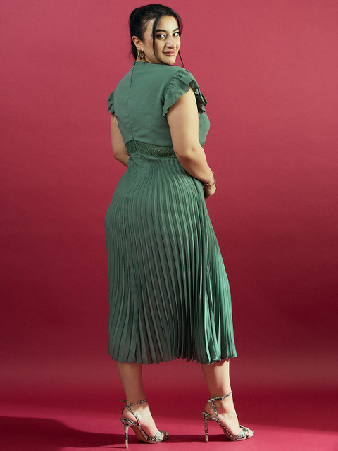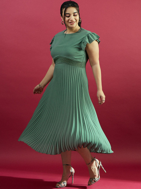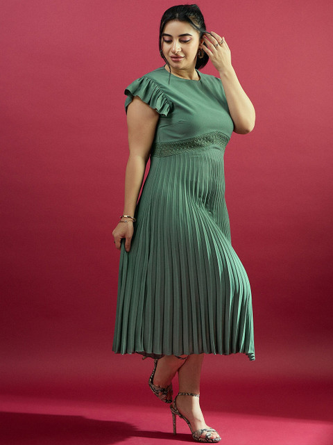 - Green solid fit & flare dress