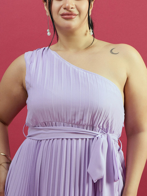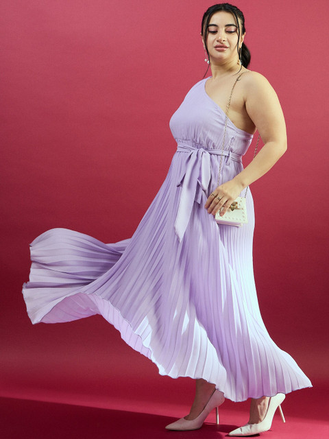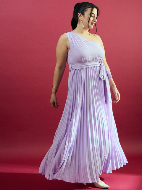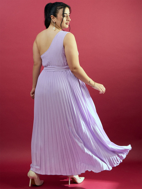 CURVE BY KASSUALLY Plus Size Purple One Shoulder Pleated Maxi Dress