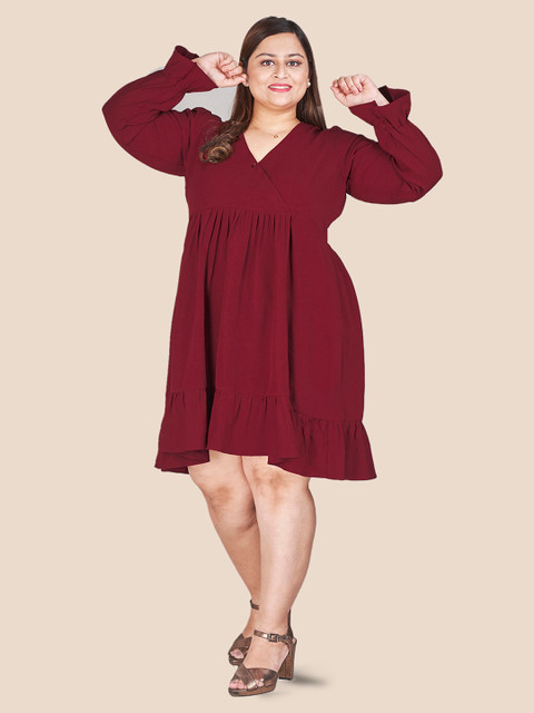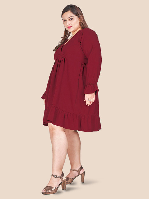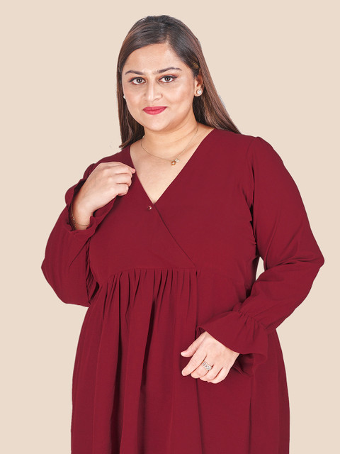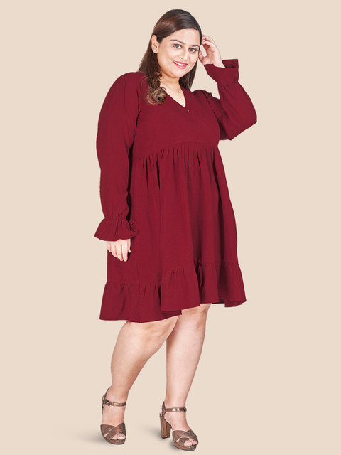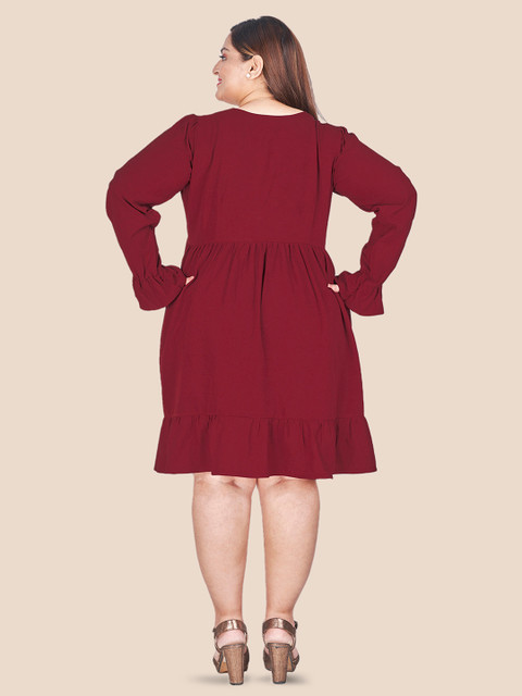 - Maroon solid a-line dress