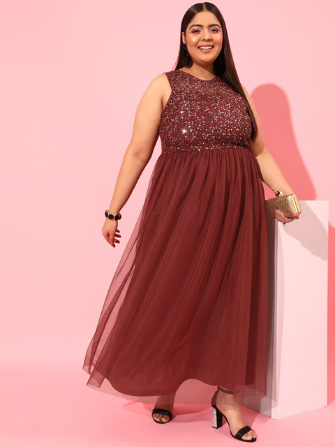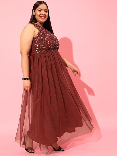 The dress as per the amount is good, but the problem is that the colour depicted on site (brown? and colour delivered (maroonish magenta)is different. Please depict proper colour otherwise the dress is good. It would be better if you add attachable sleeves… As most plus size women are conscious of their arms. It will be good to give them option of sleeves