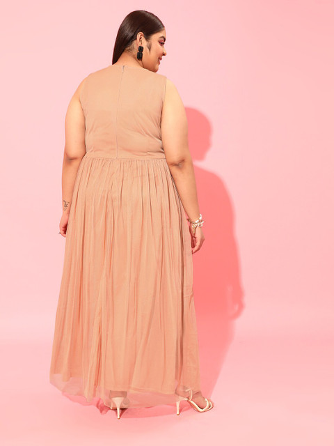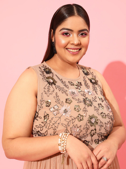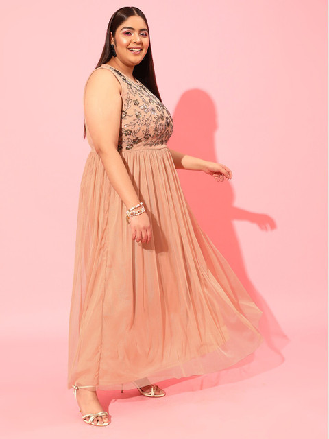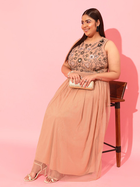 - Peach-coloured embellished a-line dress