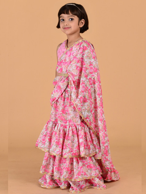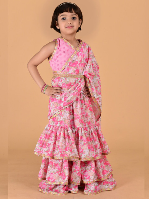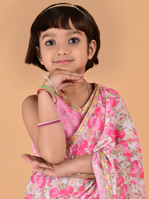 - Pink and white saree