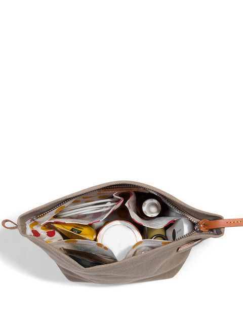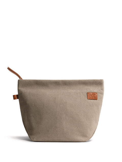 Fleet signature Canvas organizer pouch. Singular relaxed compartment. Exclusive print, wholly cotton inner lining. Four Versatile inner pockets in contrast print. Concealed metal zipper with sturdy leather pull. Classic leather branding, covertly placed for subtlety.