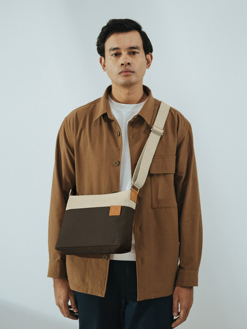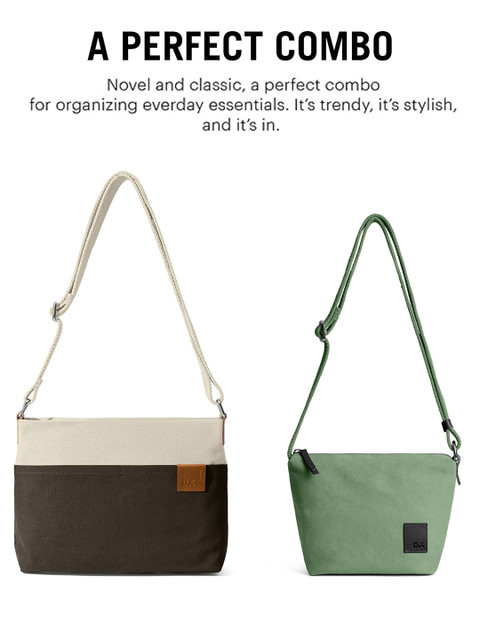 Pack of 2 mint green , brown & off white solid sling bag, with zip detail
