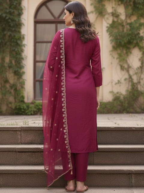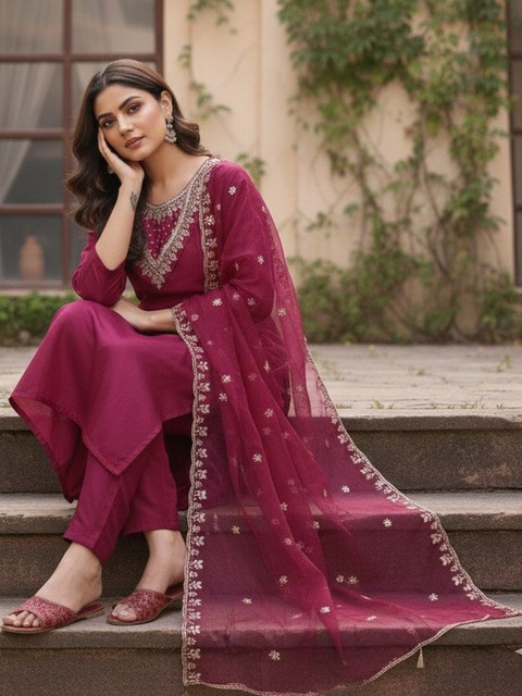 Be the first to review “DAMAAR TEXTILE Women Ethnic Motifs Embroidered Regular Kurta with Trousers & With Dupatta”