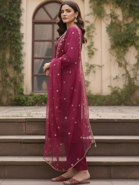 DAMAAR TEXTILE Women Ethnic Motifs Embroidered Regular Kurta with Trousers & With Dupatta