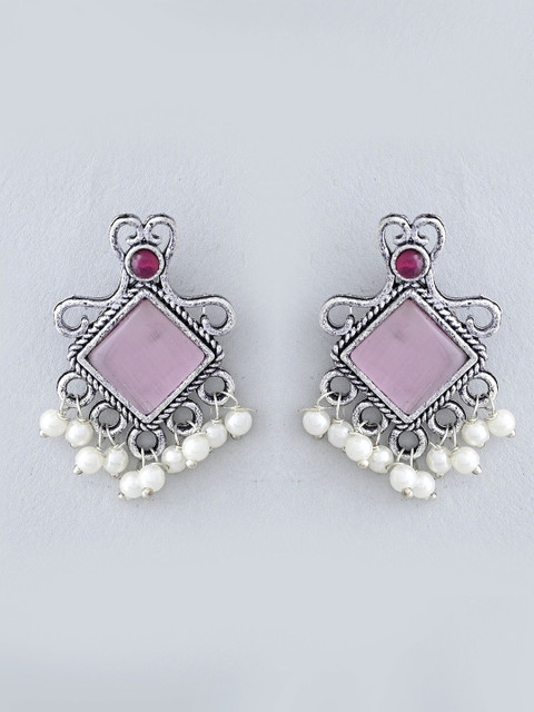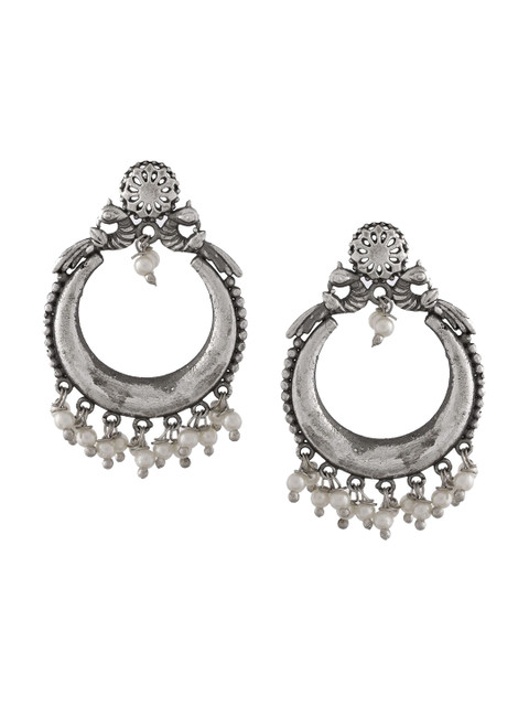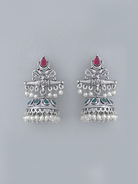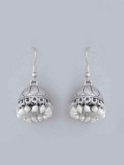 Silver-toned contemporary jhumkas, silver-plated