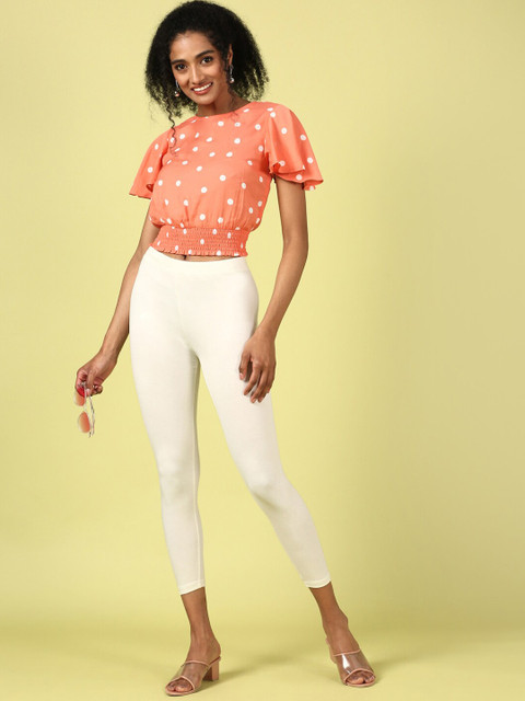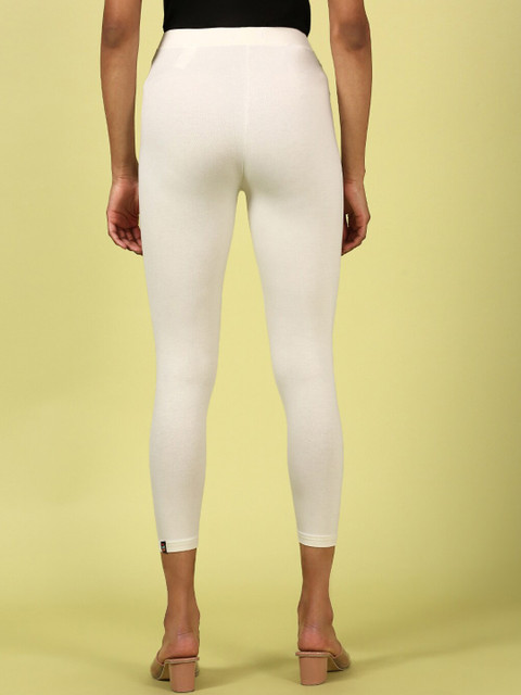 Off-white solid mid-rise ankle-length leggings, has an elasticated waistband with slip-on closure