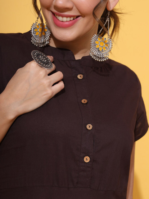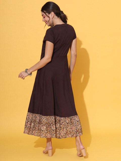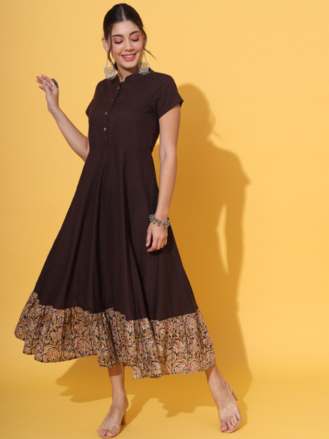 - Brown and beige solid fit & flare ethnic dress