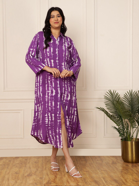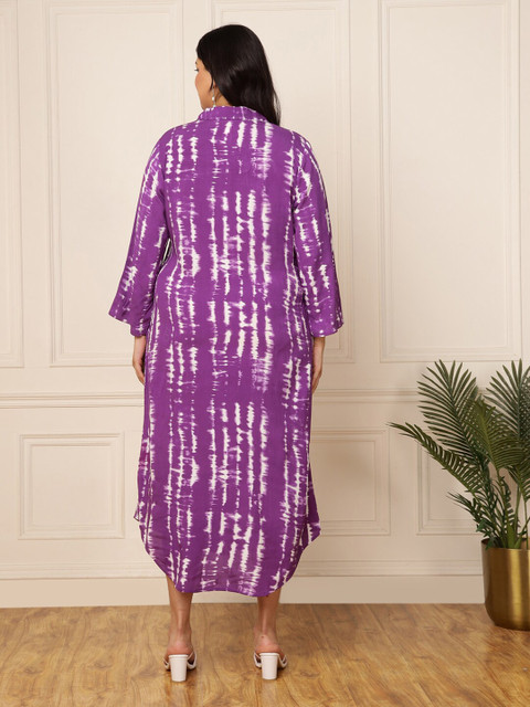 - Lavender ethnic motifs print a-line dress