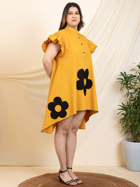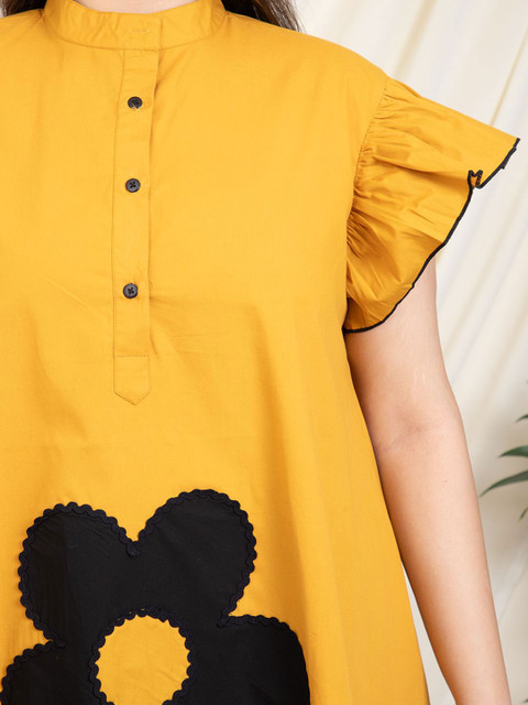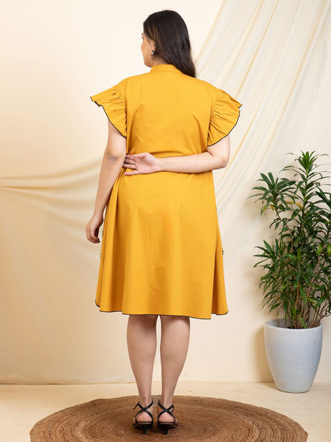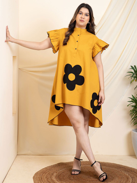 - Yellow and black floral self design a-line dress