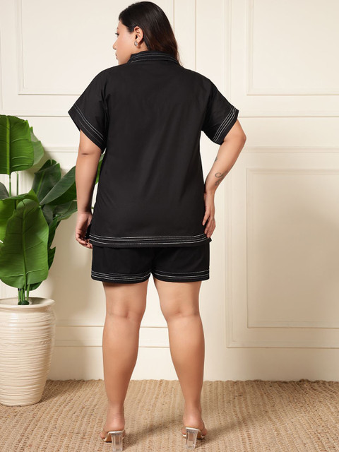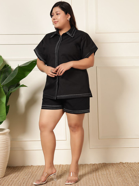 DEEBACO Plus Size Short Sleeves Pure Cotton Shirt With Shorts