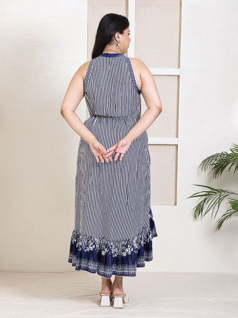 DEEBACO Plus Size Striped Fit and Flare Midi Dress