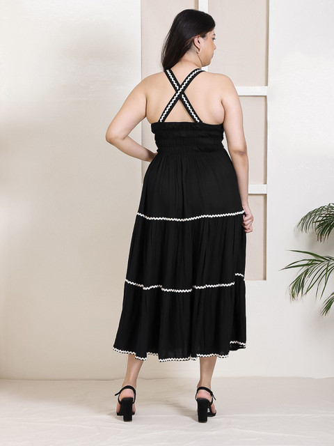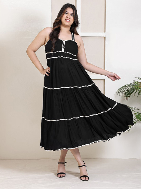3 reviews for DEEBACO Plus Size Tiered Fit and Flare Midi Dress