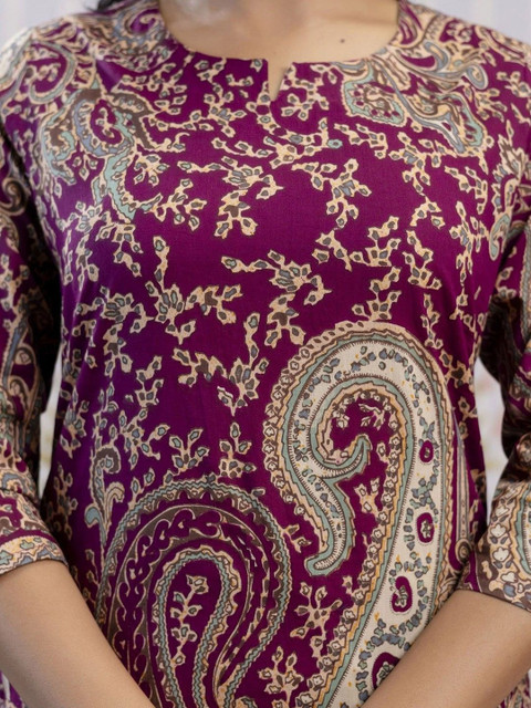 Purple Printed Tunic, has Round Neck, Three-Quarter Sleeves,