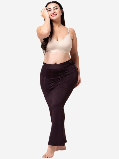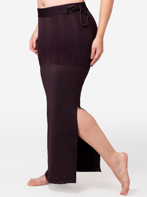 Brown solid saree shapewear, has an elasticated waistband with drawstring closure, straight hemline and side slit