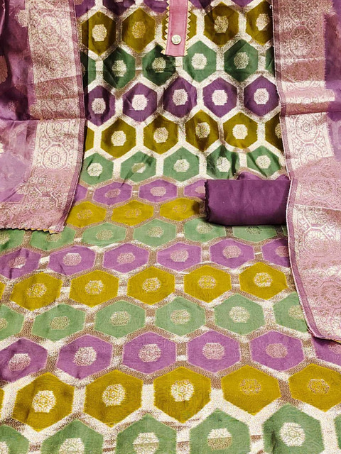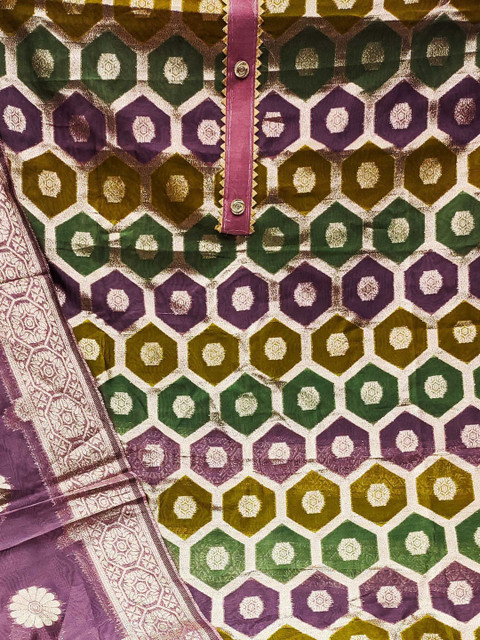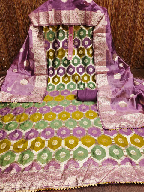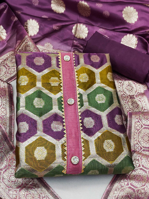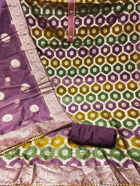 Multicoloured and violet woven design unstitched dress material