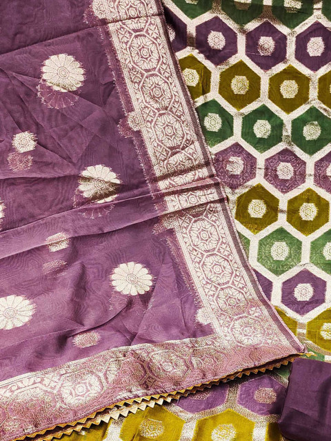 Replenish Your Wardrobe This Unstitched Wrinkle Free Dress Material Set By Dhaaga Ghar Brand. Weaving Design With Trendy Colors Makes It A Must Have This Season. Crafted With Perfection, This Beautifully Weaving Set Will Offer You Superb Comfort All Day Long. Top Fabric : Organja Banarasi Jacquard. In The Box : 1 Top – 1 Bottom – 1 Dupatta. Wash Care : Home Washable. Color : Voilet & Voilet. This Unstiched Trendy Chudidar Dress Can Be Used For Festive,Wedding,Office And Casual Wear.