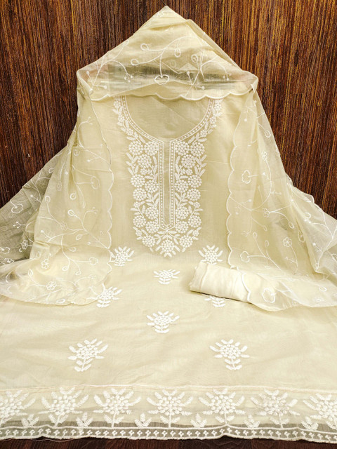 Replenish Your Wardrobe This Unstitched Wrinkle Free Dress Material Set By Dhaaga Ghar Brand. Embroidery Design With Trendy Colors Makes It A Must Have This Season. Crafted With Perfection, This Beautifully Embroidery Set Will Offer You Superb Comfort All Day Long. Top Fabric : Chanderi Cotton. In The Box : 1 Top – 1 Bottom – 1 Dupatta. Wash Care : Home Washable. Color : White & White. This Unstiched Trendy Chudidar Dress Can Be Used For Festive,Wedding,Office And Casual Wear.