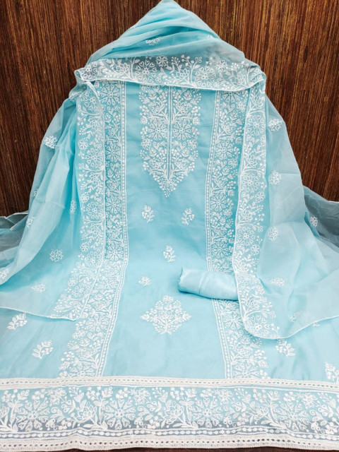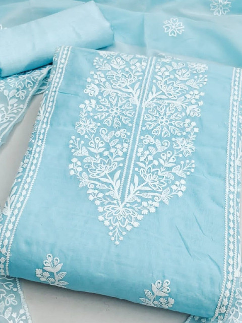 Turquoise Blue Embroidered Unstitched Dress Material