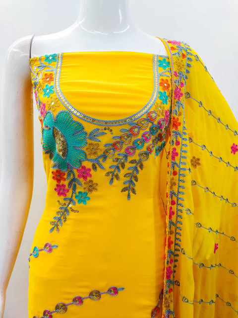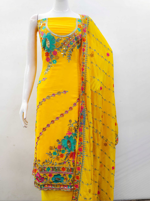 Yellow and yellow embroidered unstitched dress material