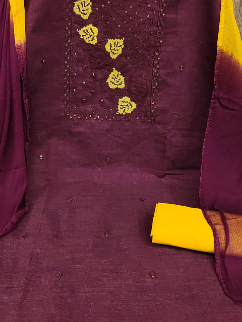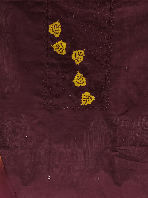 Maroon and maroon embroidered unstitched dress material