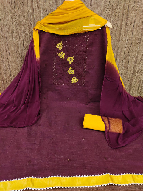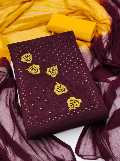 Replenish Your Wardrobe This Unstitched Wrinkle Free Dress Material Set By Dhaaga Ghar Brand. Embroidered Design With Trendy Colors Makes It A Must Have This Season. Crafted With Perfection, This Beautifully Embroidered Set Will Offer You Superb Comfort All Day Long. Top Fabric : Cotton. In The Box : 1 Top – 1 Bottom – 1 Dupatta. Wash Care : Home Washable. Color : Maroon & Maroon. This Unstiched Trendy Chudidar Dress Can Be Used For Festive,Wedding,Office And Casual Wear.