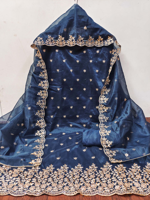 Navy blue and teal embroidered dupatta, has taping border