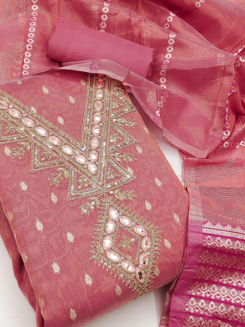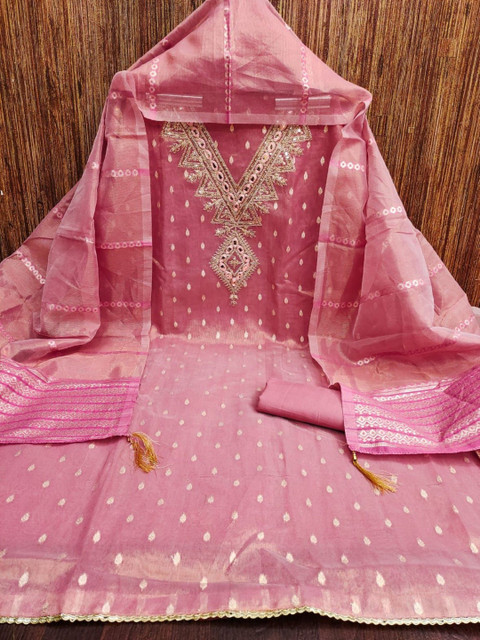Pink Embroidered Unstitched Dress Material