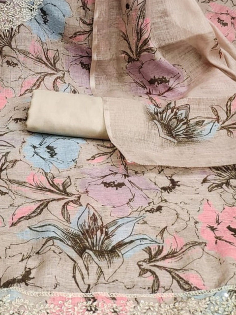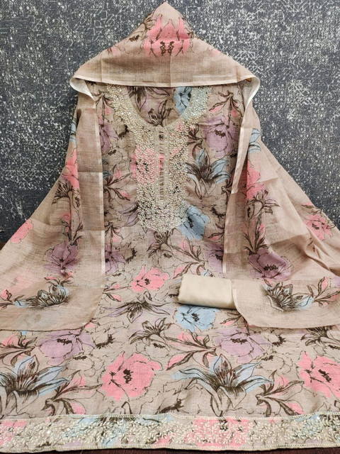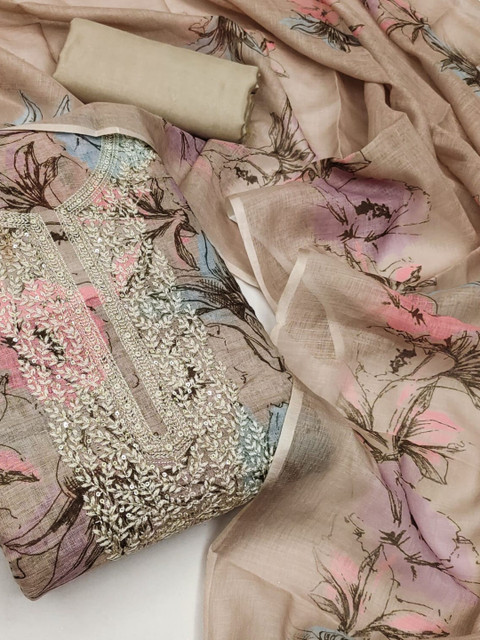 Pink Printed Unstitched Dress Material