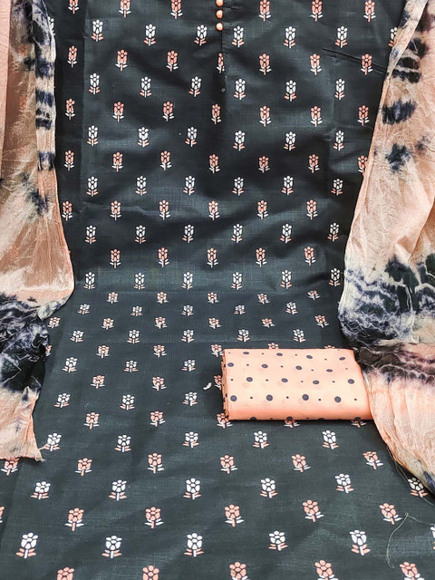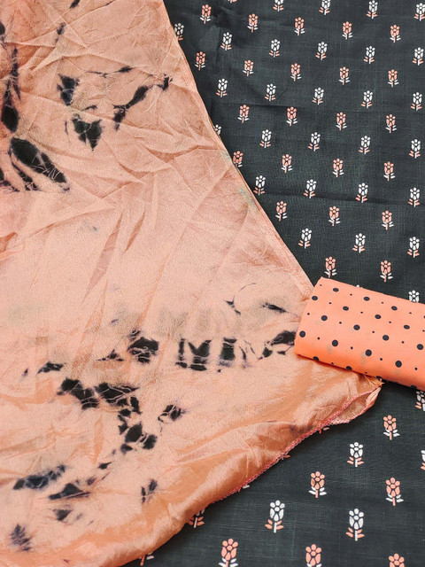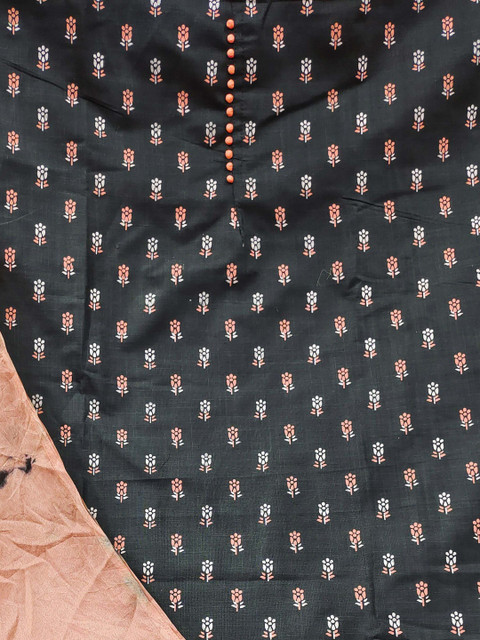 Replenish Your Wardrobe This Unstitched Wrinkle Free Dress Material Set By Dhaaga Ghar Brand. Printed Design With Trendy Colors Makes It A Must Have This Season. Crafted With Perfection, This Beautifully Printed Set Will Offer You Superb Comfort All Day Long. Top Fabric : Slub Cotton. In The Box : 1 Top – 1 Bottom – 1 Dupatta. Wash Care : Home Washable. Color : Black & Peach. This Unstiched Trendy Chudidar Dress Can Be Used For Festive,Wedding,Office And Casual Wear.