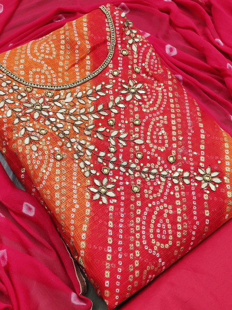 Replenish Your Wardrobe This Unstitched Wrinkle Free Dress Material Set By Dhaaga Ghar Brand. Handwork Design With Trendy Colors Makes It A Must Have This Season. Crafted With Perfection, This Beautifully Handwork Set Will Offer You Superb Comfort All Day Long. Top Fabric : Cotton Jacquard. In The Box : 1 Top – 1 Bottom – 1 Dupatta. Wash Care : Home Washable. Color : Multi Colour & Pink. This Unstiched Trendy Chudidar Dress Can Be Used For Festive,Wedding,Office And Casual Wear.