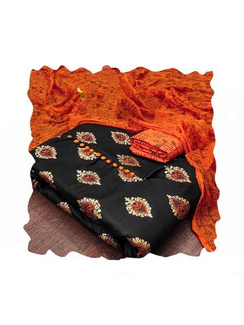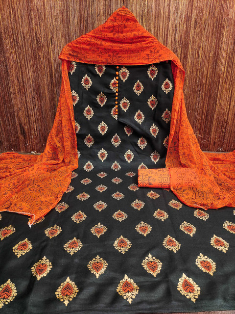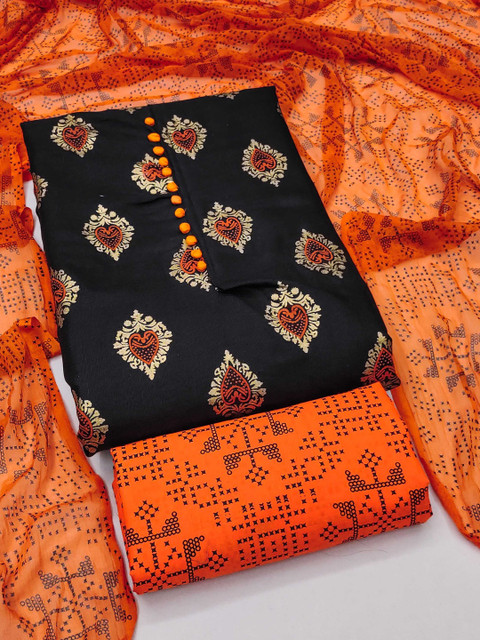Replenish Your Wardrobe This Unstitched Wrinkle Free Dress Material Set By Dhaaga Ghar Brand. Printed Design With Trendy Colors Makes It A Must Have This Season. Crafted With Perfection, This Beautifully Printed Set Will Offer You Superb Comfort All Day Long. Top Fabric : Slub Cotton. In The Box : 1 Top – 1 Bottom – 1 Dupatta. Wash Care : Home Washable. Color : Black & Orange. This Unstiched Trendy Chudidar Dress Can Be Used For Festive,Wedding,Office And Casual Wear.
