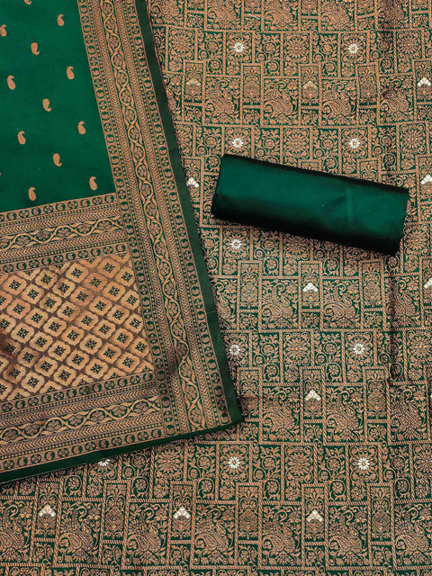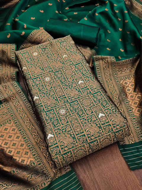 Replenish Your Wardrobe This Unstitched Wrinkle Free Dress Material Set By Dhaaga Ghar Brand. Weaving Design With Trendy Colors Makes It A Must Have This Season. Crafted With Perfection, This Beautifully Weaving Set Will Offer You Superb Comfort All Day Long. Top Fabric : Jacquard Silk. In The Box : 1 Top – 1 Bottom – 1 Dupatta. Wash Care : Home Washable. Color : Mehandi & Mehandi. This Unstiched Trendy Chudidar Dress Can Be Used For Festive,Wedding,Office And Casual Wear.
