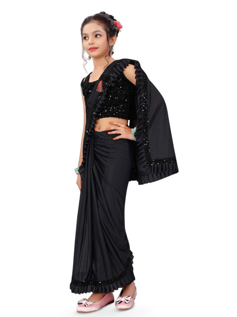 The blouse worn by the model might be for modelling purpose only. Check the image of the blouse piece to understand how the actual blouse piece looks like.