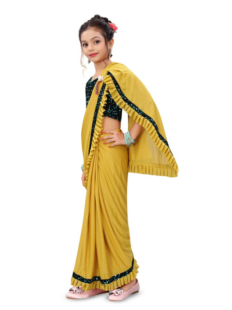 The blouse worn by the model might be for modelling purpose only. Check the image of the blouse piece to understand how the actual blouse piece looks like.