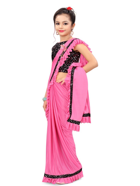 The blouse worn by the model might be for modelling purpose only. Check the image of the blouse piece to understand how the actual blouse piece looks like.