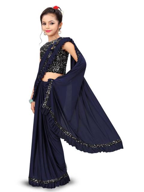 - Navy blue and black ready to wear saree
