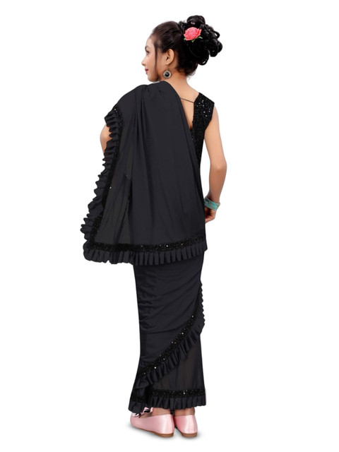 Dhyey Fashion Girls Sequinned Ruffled Saree