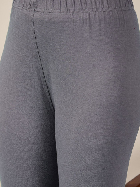 Grey solid ankle-length leggings, has an elasticated waistband with slip-on closure