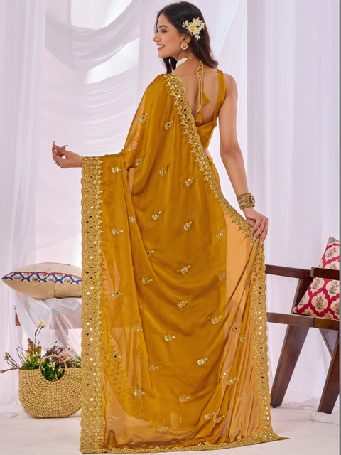 - Embellished saree with embellished border border