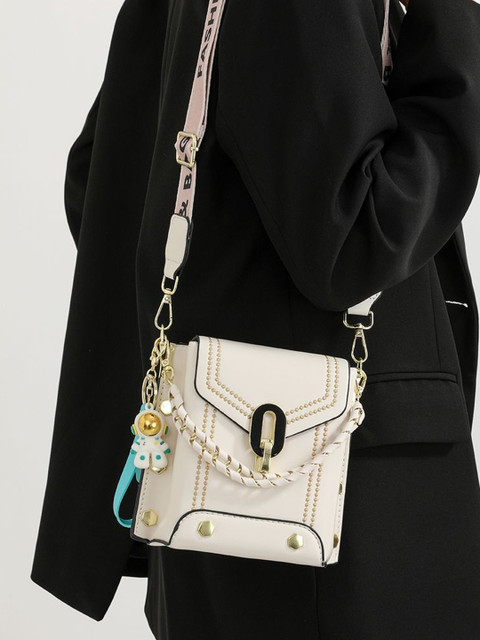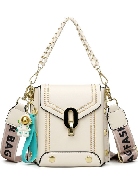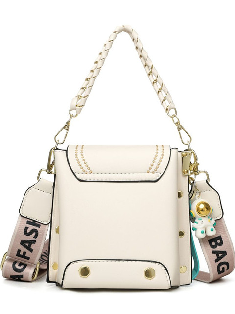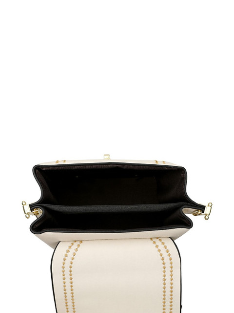 Off white embellished sling bag, with embellished detail