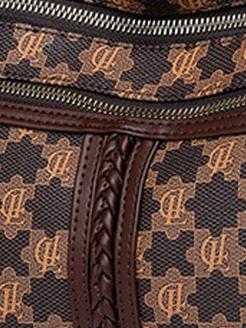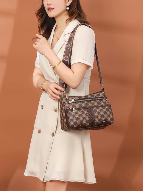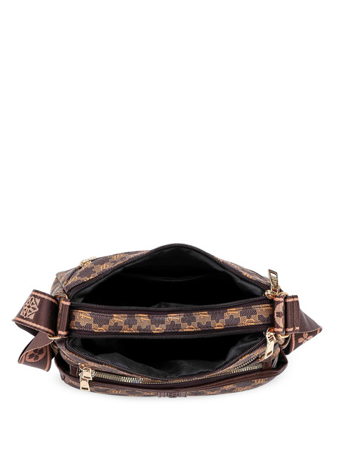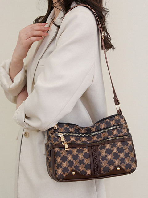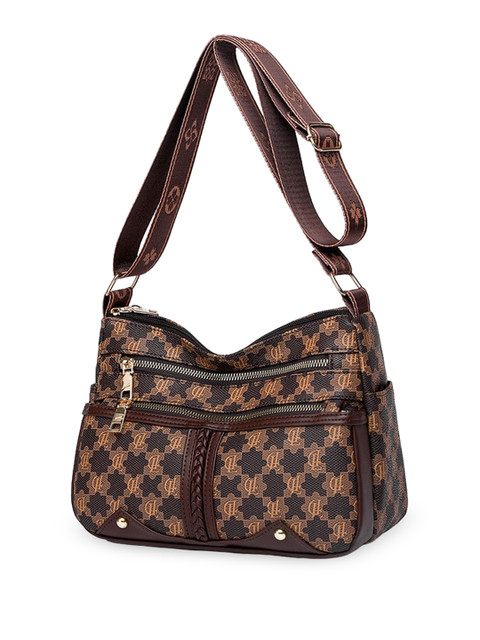 Brown & black geometric textured shoulder bag