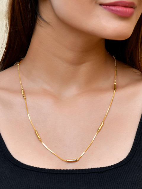 The product is really good,comes with an appropriate length and a perfect gold finish thank you myntra