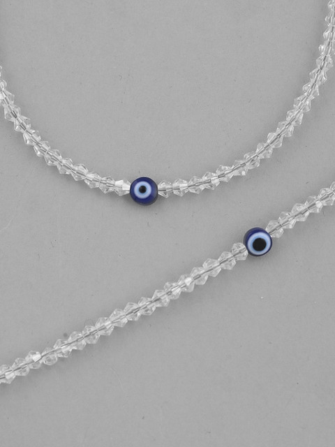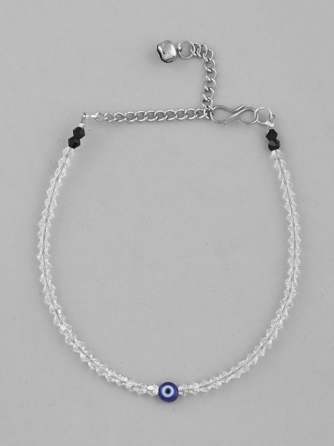 DIVASTRI Set Of 2 Sttainless Steel Silver-Plated Artificial Stones Beaded Anklet