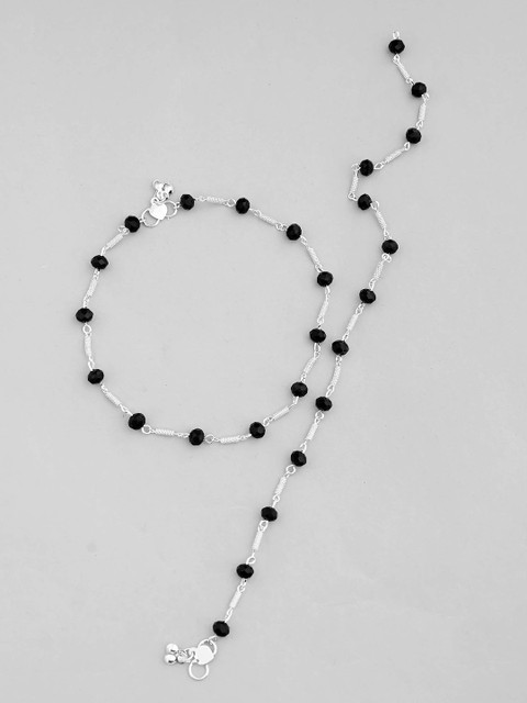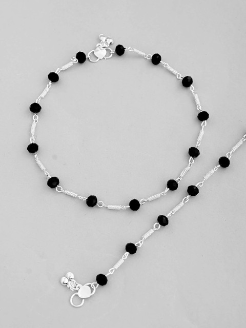 Silver-plated and black artificial stones beaded anklet has s-hook closures